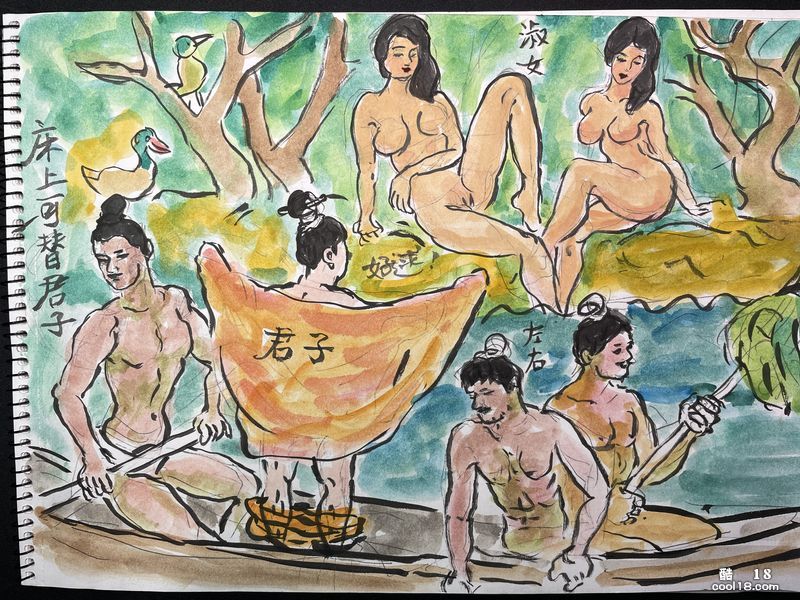 诗情画色——窈窕淑女,君子好逑。 1 诗经第一首 关关雎鸠,在河之洲。窈窕淑女,君子好逑。诗经包括三部分“风雅颂”。 “风”这个字古代指交配。和“疯”差不多,就是交配时候的乱象。本来温文尔雅的,交配的时候就发疯了,动作声音都变了。不但人的交配叫做“风”,动物的交配也叫做“风”。现在还说“风马牛不相及”,就是牛和马不能配。让马和牛“疯”一下,不可能的。风流,风骚,这些风都是指交配。风流愿意是“fuck around”.流动性地风。风骚的骚,是味道。我们在”临风谁更飘香屑“中说过,味道,包括闻不到的气味,对人的行为影响很大。狗狗发情会散发强烈气味,能把几公里以外的异性都勾过来。不论男女,人也有这本事。而且这种气味和骚味类似。至少发源地都在泌尿系统附近。当然人类以视觉为最重要器官。所以人的”骚“主要说的是模样。风骚的意思是模样做派气味,很招人去交配。 国风,在古代就时国王(王子)的交配。一般人的交配,上不了诗经这么伟大的文集。国王交配当然是很重大的事情。比如戴安娜和查尔斯,唐玄宗找杨贵妃,纣王找妲己。周幽王找褒姒,都是重大事情。后世一直在谈论着。 风雅颂都是歌,雅是说国家历史之类的,颂是歌颂帝王。 :“窈窕淑女,琴瑟友之,窈窕淑女,钟鼓乐之”。琴瑟和钟鼓都是王侯才能有的。说明这时王侯在找对象。 参差荇菜,左右流之。窈窕淑女,寤寐求之。 但是这和“荇菜”有什么关系?荇菜就是猪草。这首诗从头到尾,反复说“荇菜”, 参差荇菜,左右采之 参差荇菜,左右芼之。 有人说是淑女在采荇菜,有人说只有婢女才干这活儿。对婢女不用追求。想搞谁搞谁。宝玉追求过袭人吗?搞完可卿,捎带着就搞了袭人。有人说是那个爷们在采。王侯也不干这活儿。实际上诗中说的很清楚,是男主人的“左右”在采。左右就是随从。这个左右采之。不是从左边右边采,而是左右随从采。