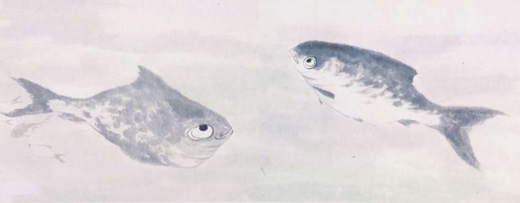 图 | 左:清·朱耷《孤禽图》(局部),纸本水墨,44×103.5厘米;右:清·朱耷《鱼》