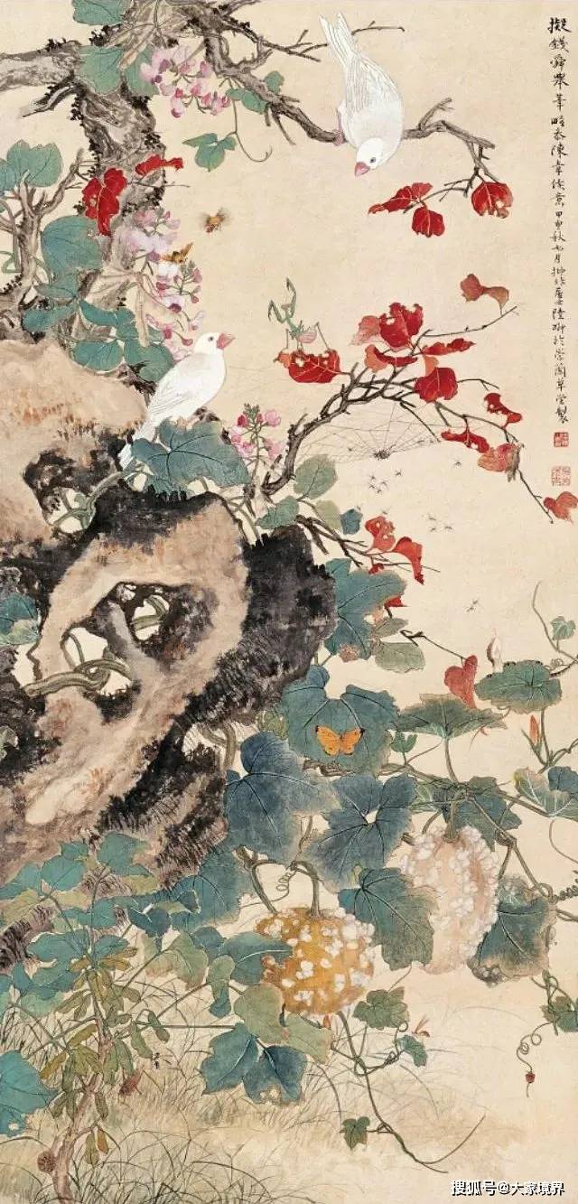 花鸟画的章法,绝不是一个“天平”。而是一把“秤”。是大胆落墨时,总会闯出毛病来,即发现矛盾,统一矛盾。即吴茀之说的造“险”破“险”。这就是造型艺术上的“章法力学”,也可以说成好似一把中国式的“秤”(疏密关系)。