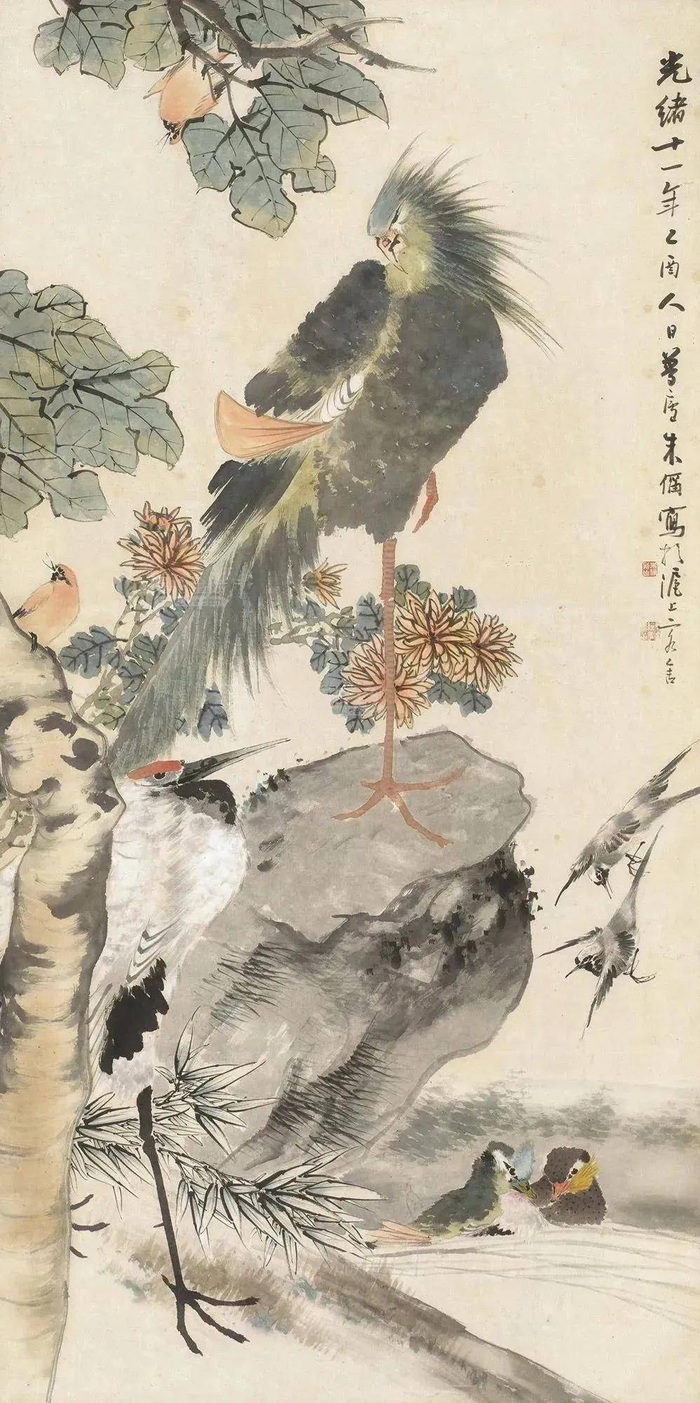 朱偁是“海派”画家代表人物之一,后学都很多,从19世纪中叶起,“海派”的影响几乎覆盖整个中国画领域,而“海派”早期几乎都以嘉兴画家为主,人数之多,影响之大,时称“鸳湖派”。其中任颐、虚谷,吴昌硕和蒲华并称“海派四杰”,为海派之翘楚;张熊和朱熊,任熊合称“沪上三熊”,是海派早期的代表,其地位崇高,形同创始人、朱偁为同光年间“海上十名家”之一,时与王礼同领海上花鸟画派主流。