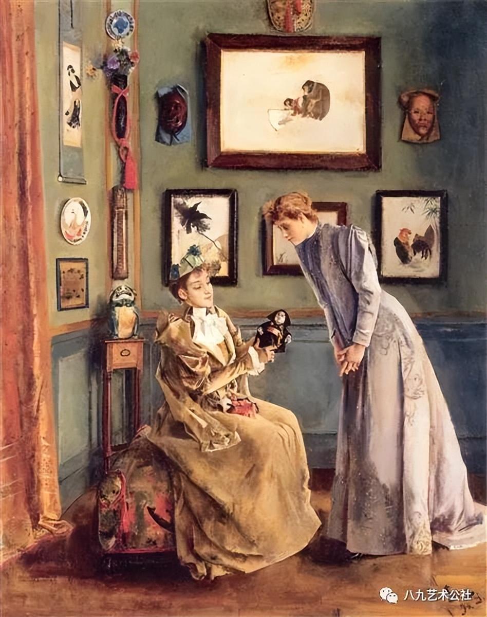 阿尔弗雷德·史蒂文斯(1823年 - 1906年)是19世纪后半期巴黎著名艺术家之一。他笔下的优美女性及华丽有质感的服装和奢华服饰作品在当时引起了公众的骚动。在当代女性绘画方面占有一席之地。