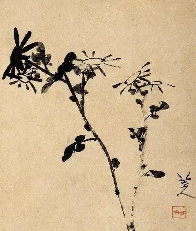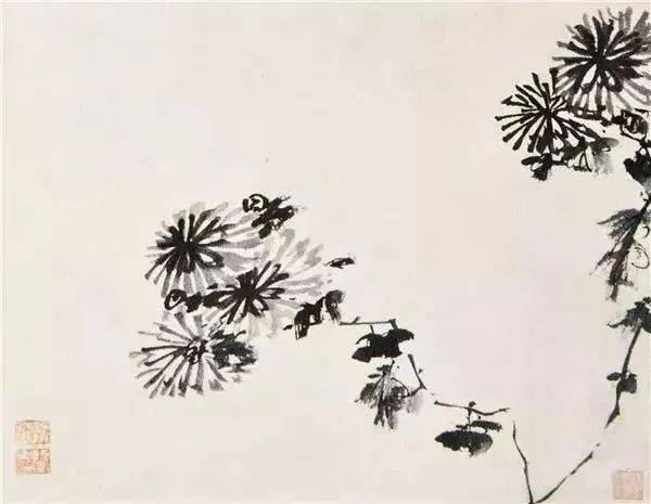 今天来分享这两位大师笔下的菊花,各有千秋!