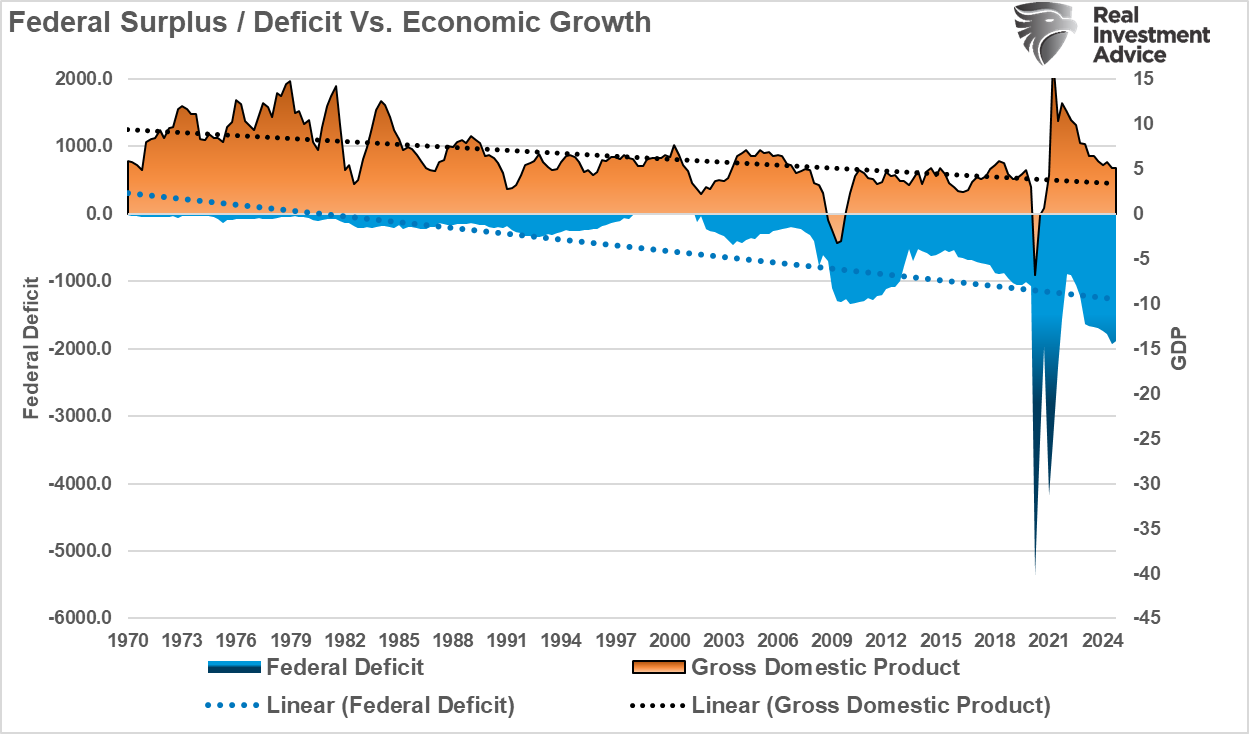 联邦盈余/赤字vs经济增长