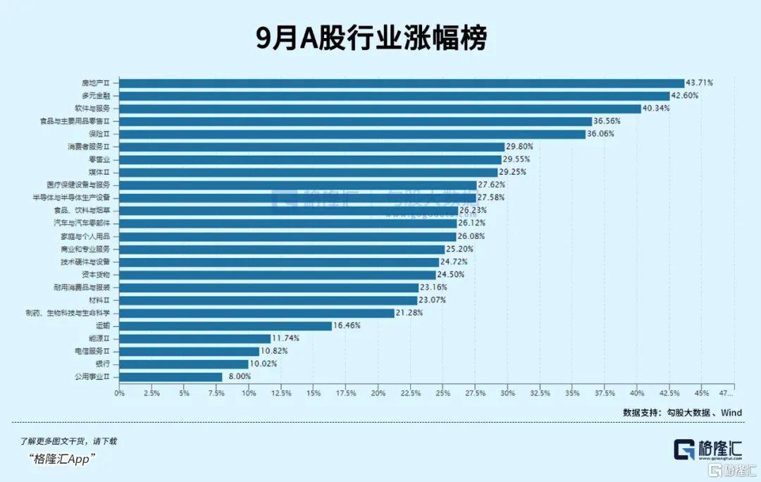 在过去的1个月,A股的地产、券商保险、食品饮料、互联网、各种可选消费等涨幅都接近或超过30%,多的超过了40%,可见全市场的资产都得到了显著拉升。