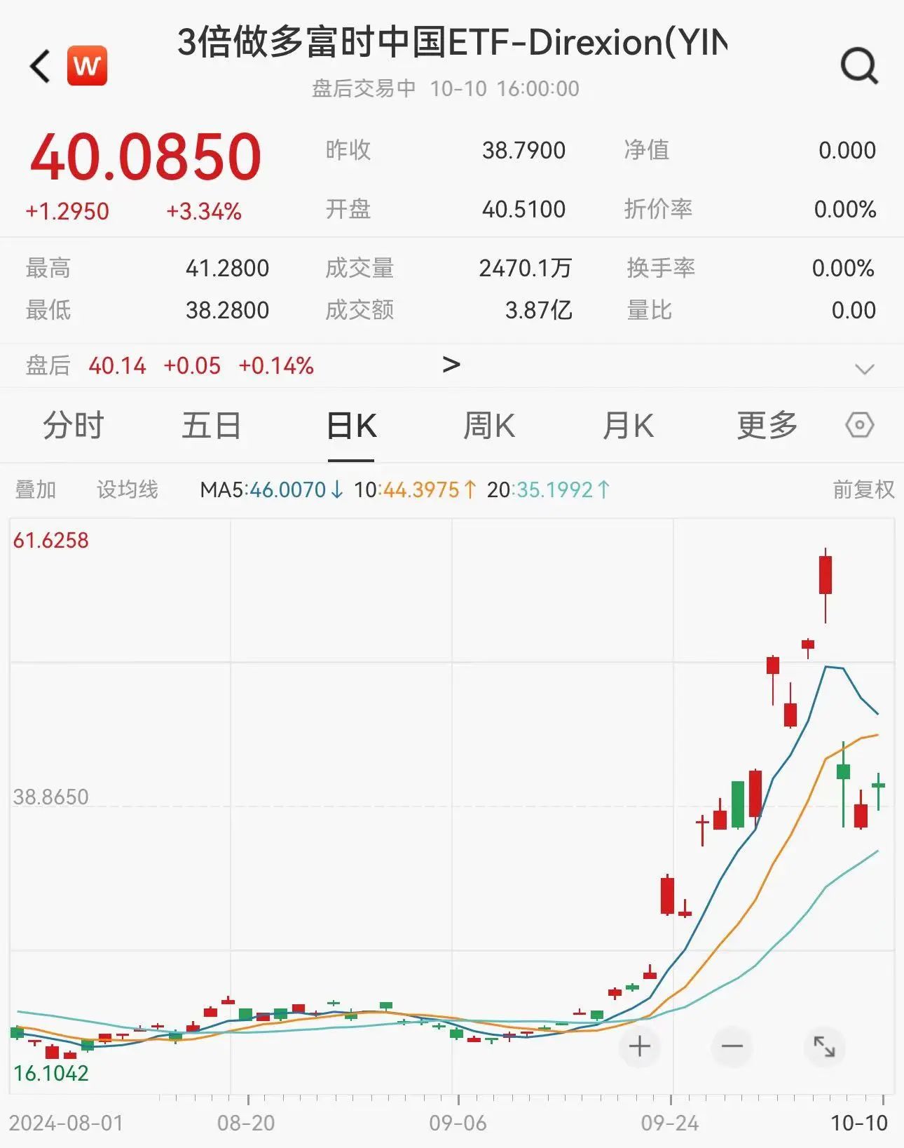 iShares MSCI中国ETF上涨0.74%;Direxion Daily FTSE China Bull 3X Shares (NYSE:YINN)(代码:YINN)尾盘涨幅收窄,收盘涨3.34%。