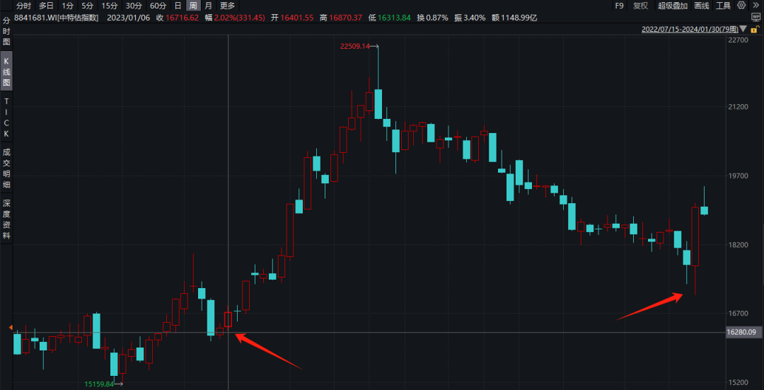 A股表现惨淡中,唯一跑赢市场的大板块是中特估指数,恰巧本轮中特估指数启动的位置,与2023年中特估行情启动的位置接近。