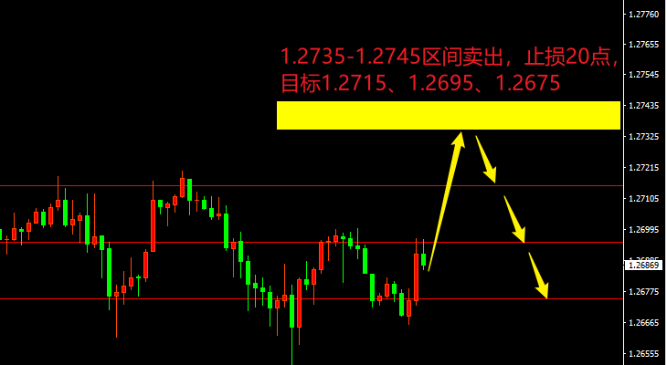 1.2735-1.2745区间卖出,止损20点,目标1.2715、1.2695、1.2675。