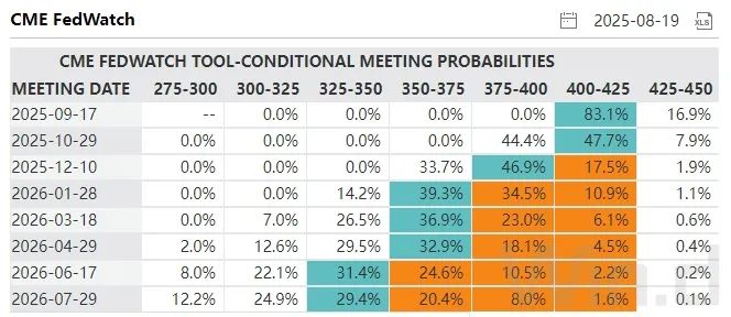 而美国财长贝森特(Scott Bessent)近期甚至主张美联储9月一次性降息50个基点,此后继续大幅降息。但大部分市场人士和投资者认为,如此降息幅度可能会显得“恐慌”,渐进的25个基点降息幅度可能性更大。