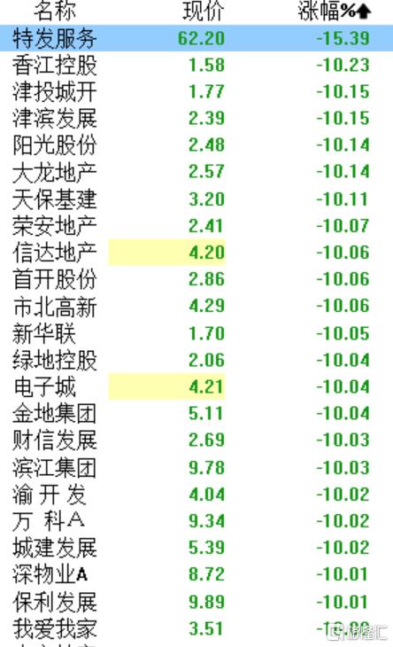 地产股持续下挫,万科A、渝开发、滨江集团、保利发展、我爱我家等多股跌停。