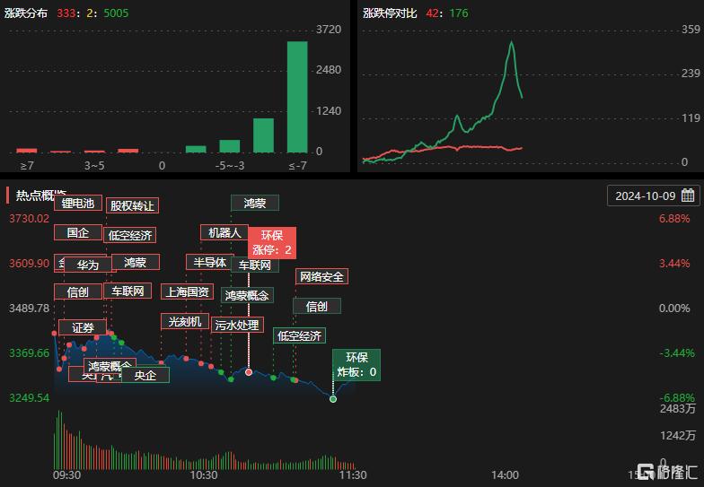 两市超5000只个股下跌,333只个股上涨,176只个股跌停,42只个股涨停。
