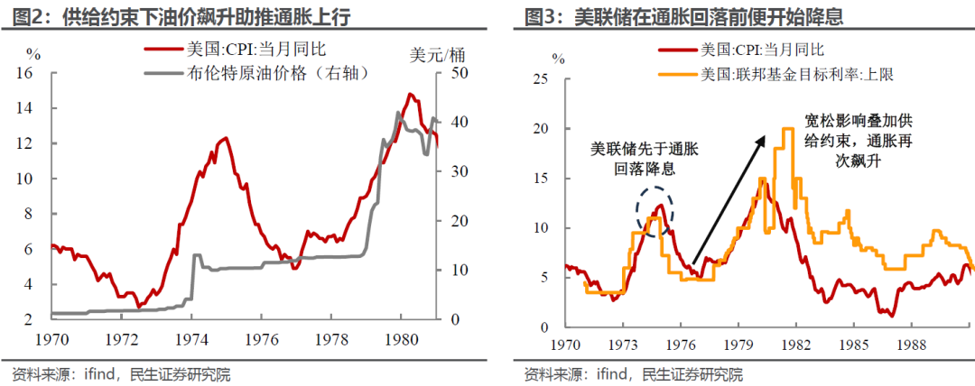 1970s石油危机:石油禁运带来的供应中断,对通胀的影响幅度更大、更难缠。供应短缺带来的缺口,如果没法找到新的供给来源,客观上只能通过减少需求来控制通胀,让价量在一个更低的水平达到均衡。这个过程必然是“痛苦”的,一旦政策不够坚决,通胀会显得异常顽固。