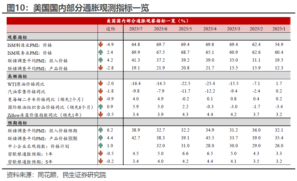 各种调查价格:ISM制造业和服务业价格指数,各地联储的调查的原材料和出厂价格指数,中小企业调查提价意愿等。