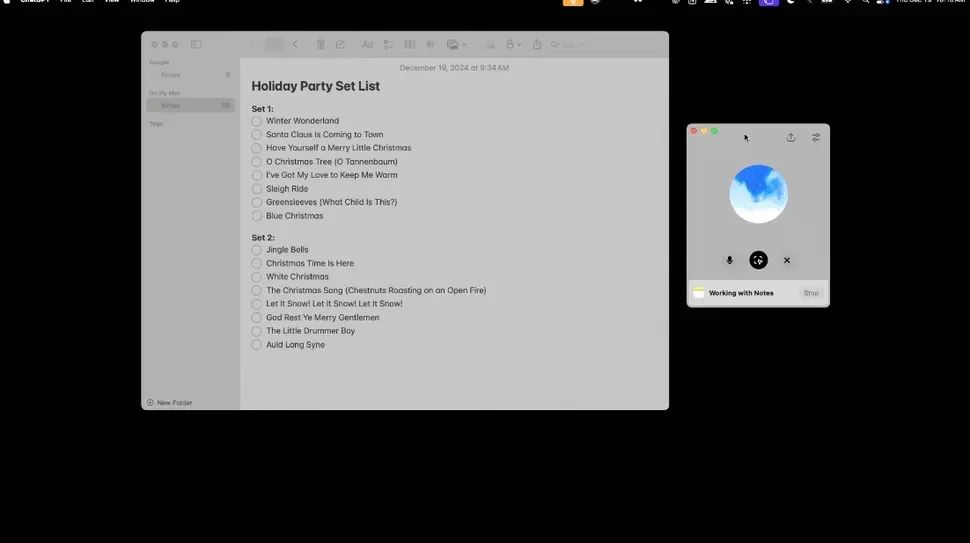 现场演示有这样一个例子,当用户在 Apple Notes 中设定「节日派对歌单」,并语音征询 ChatGPT 对候选歌曲的意见。ChatGPT 能指出用户的错误,如将圣诞歌曲《Frosty the Snowman》误写为《Freezy the Snowman》。