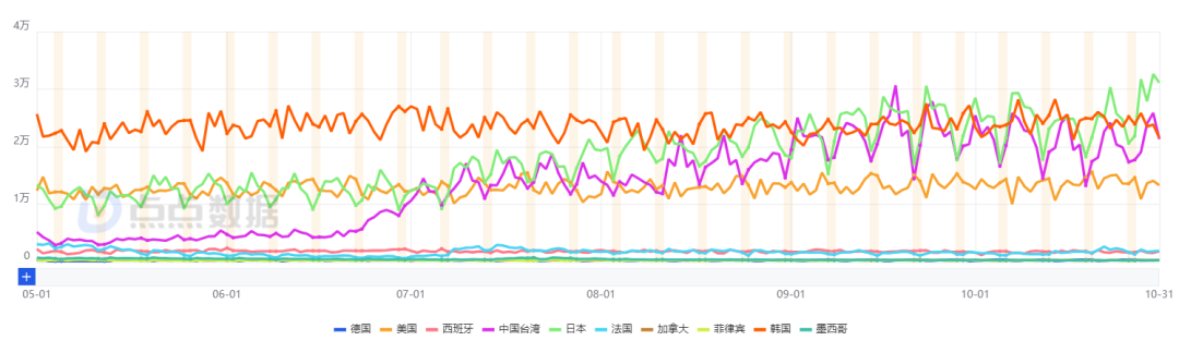 而除了日韩两大传统市场,今年下半年,Speak 在中国台湾市场的收入开始快速增长,近 30 天收入达到了 26 万美元。