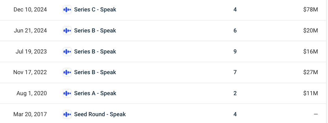 Speak 融资历史
