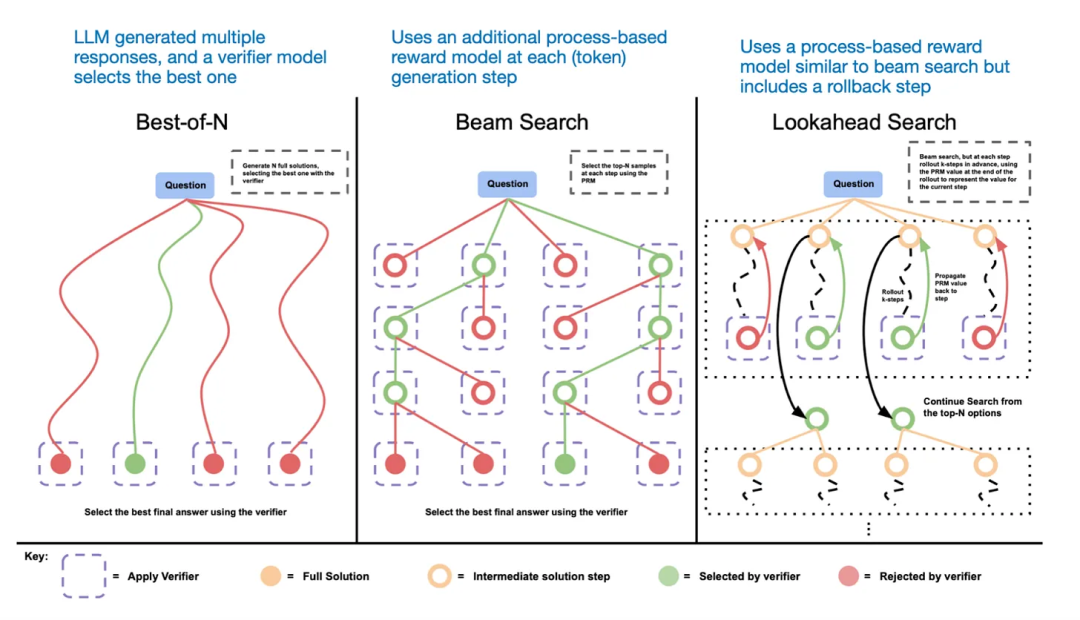 不同的基于搜索的方法依赖于基于过程奖励的模型来选择最佳答案。