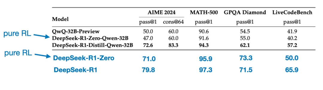 虽然R1 – Zero并非最顶尖的推理模型,但如上图所示,它确实通过生成中间 “思考” 步骤展现出了推理能力。这证实了利用纯强化学习来开发推理模型是可行的,而且DeepSeek是首个展示(或至少是发表相关成果)这种方法的团队。