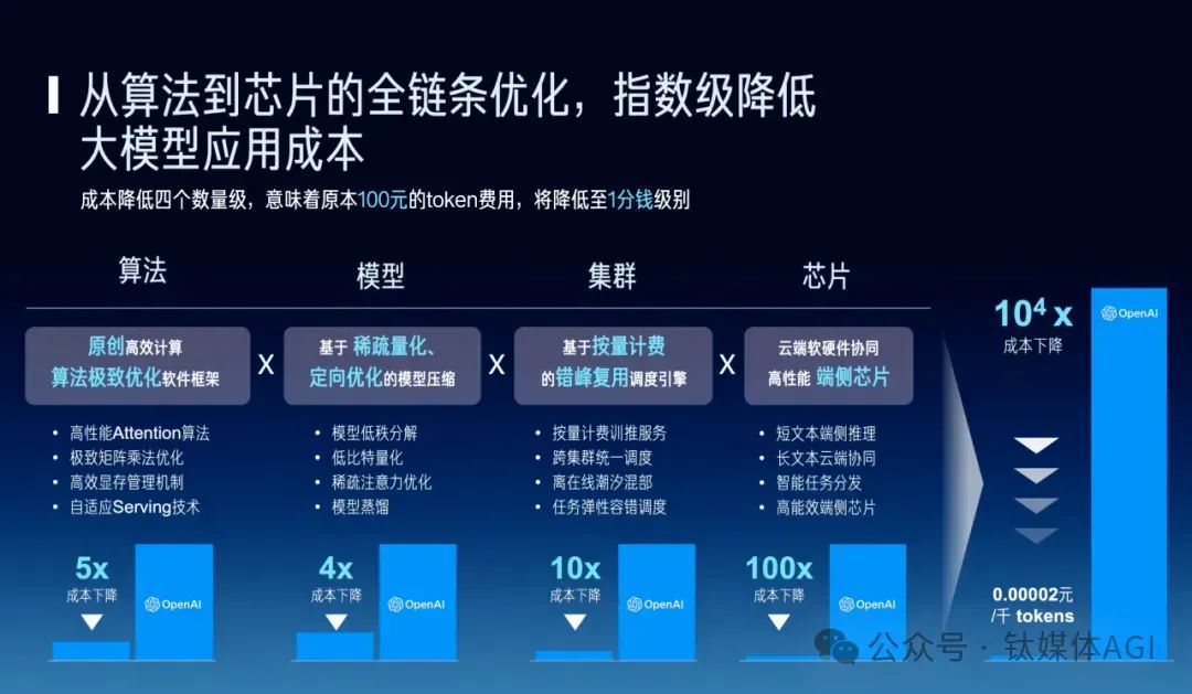 去年7月的一场演讲中,汪玉表示,无问芯穹是面向大模型的MxN软硬件联合优化中间层的平台,利用其平台设施,推理成本、微调成本、人力成本均有望降低10倍以上,同时文本长度也会增加10倍以上。
