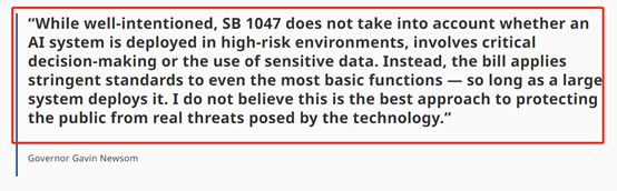 美国加州州长Gavin Newsom在今天凌晨正式否决——SB-1047法案!