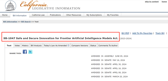 SB-1047是美国加州在今年2月7日拟定的,全名叫《SB-1047 前沿AI大模型安全创新法案》,主要用于增强大模型安全、透明性、使用规范的条例。