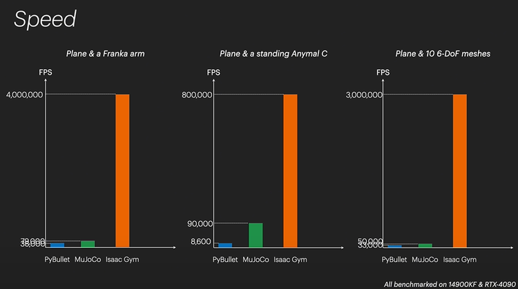 此外,许多仿真环境在物理特性和渲染效果方面与现实世界存在差距,导致训练出的机器人难以在现实世界中应用,形成“Sim2Real Gap”。Genesis的解决方式是提供一个能够模拟各种材料和物理现象的通用物理引擎,并采用真实感渲染系统,尽可能使仿真环境逼近真实世界,支持基于物理原理的触觉传感器模拟。类似英伟达的Isaac Sim或Isaac Gym等项目通过仿真技术,加速了机器人领域的发展。