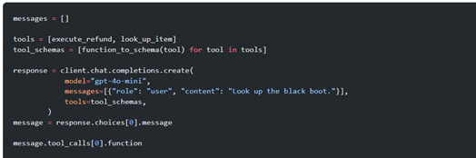 但目前这个循环忽略了函数调用,所以我们需要添加一下。模型要求函数被格式化为函数模式。为了方便,我们可以定义一个辅助函数,将 Python 函数转换为相应的函数模式。