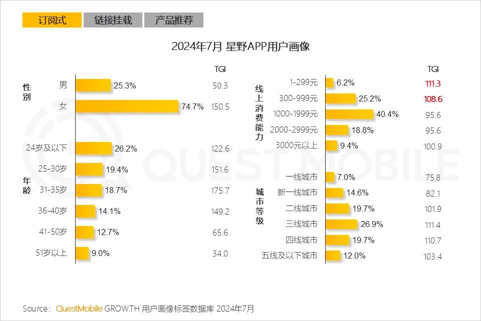而MiniMax开发的星野,虽然在国内已经成为头部AI社交软件,搭建起了一套较为成熟的商业模式,可是在商业盈利上还是难有突破。QuestMobile数据显示,2024年7月,星野用户的线上消费能力虽然主要集中在1000-1999元,但活跃用户月线上消费能力主要集中在千元以下。