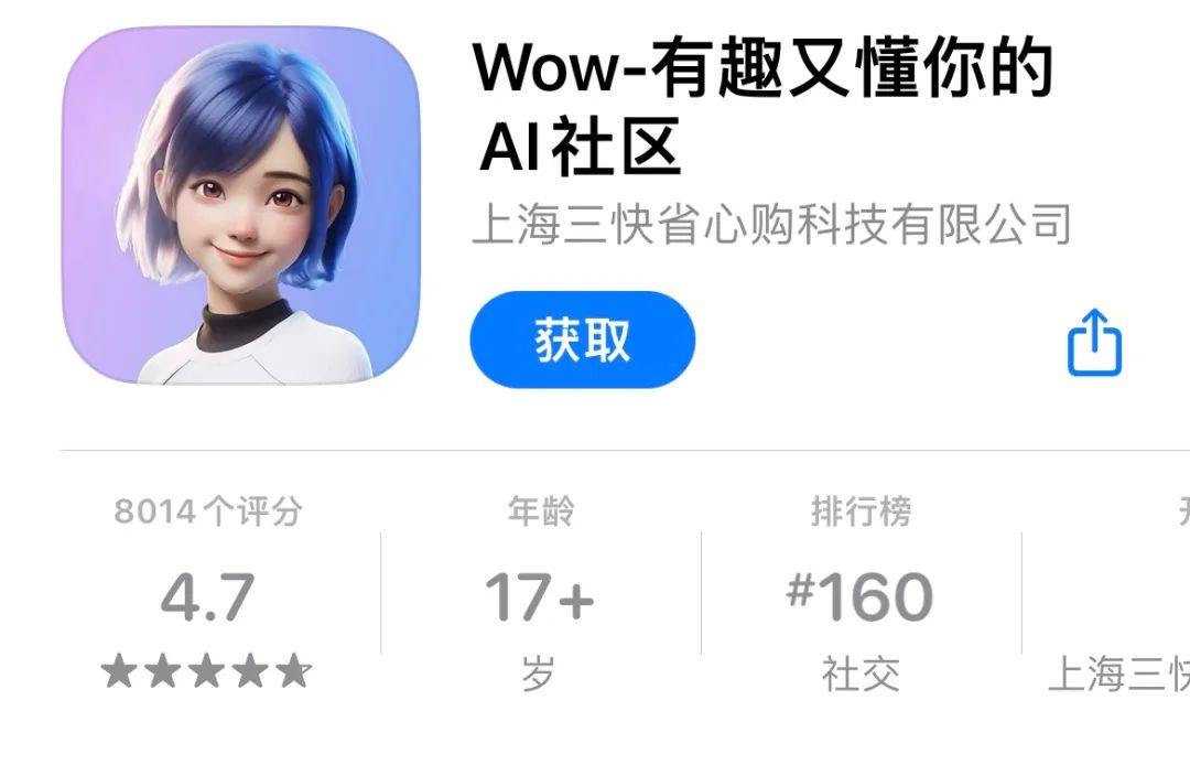 但AI的热度,基本聚焦于头部科技公司的技术更新。大模型的“热”对大众而言存在着一定的认知壁垒,大众无法敏锐感知到专业革新与产业颠覆,只能从各个科技公司研发的AI软件中,获得技术变化带来的新体验。而市面上林林总总的AI软件中,AI社交软件往往是最能引起大众讨论共鸣的一个。