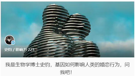 史钧:所谓基因决定我爱谁,是一种网络流传的便于理解的方式,实际情况远没有如此简单,否则大家都去做一个基因测序好了,根本不必要什么恋爱或者相亲环节了。