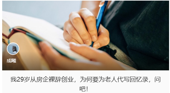 成曦:我以前在大厂,大厂的各种机制规则、向上管理让我觉得失去了自主感,我想要自由决定自己的时间搁置在哪,然后又很喜欢写作,了解了一圈写作赛道,写网文、投稿、商业文案等等,对比下来觉得写回忆录更有意义,收入也可以基本和我在大厂时的收入持平。