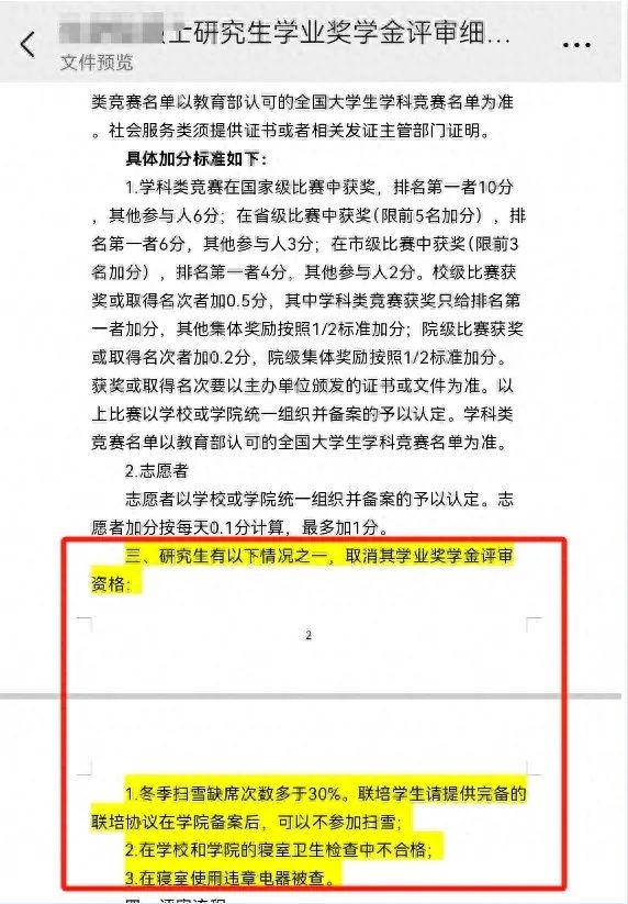 近日,辽宁大学《化学院硕士研究生学业奖学金评审细则》引发舆论争议。该《细则》明确:冬季扫雪缺席次数多于30%的研究生,将取消其学业奖学金评审资格。