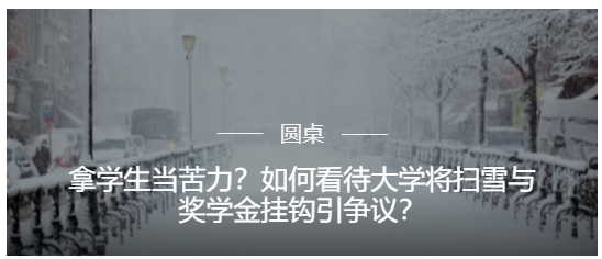 把奖学金与出席扫雪挂钩究竟合不合理?要求学生扫雪到底是为了获得“免费苦力”还是为了学生更长远的发展?澎湃问吧此前曾发布圆桌进行讨论。