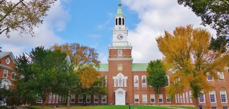 达特茅斯学院,是美国历史最悠久的世界顶尖学府,也是闻名遐迩的私立八大常春藤联盟之一。其本科生入学竞争非常激烈,2021年入学率仅有6.2% ,在2023U.S.News全美大学综合排行12名。