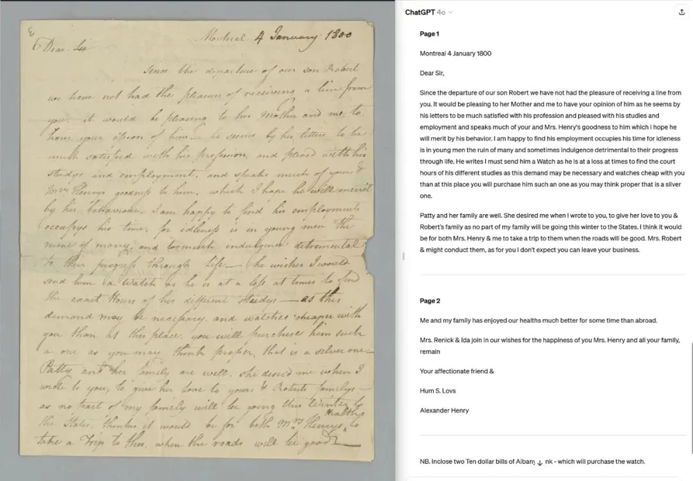 网友发现,即使是1800年代的手写笔迹,也能出色地识别……了不起。
