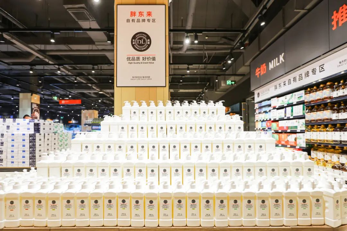 多家“胖改”超市都引进了胖东来自营热销品,如胖东来大月饼、精酿啤酒、DL自营果汁……。在打造自营爆品上,胖东来颇有心得,不少从外地赶往胖东来的消费者均是冲着这些自营品而来。