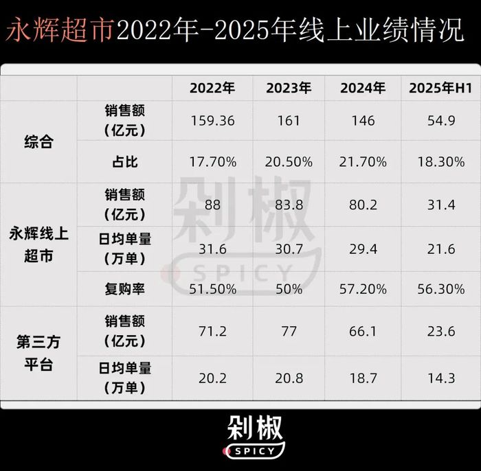 在半年报中,为数不多的亮点在于永辉超市线上业务的表现。