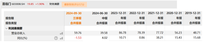 “中国床垫第一股”喜临门,交出了一份不太理想的成绩单。2024年前三季度,公司实现营收59.76亿元,同比下滑1.53%。