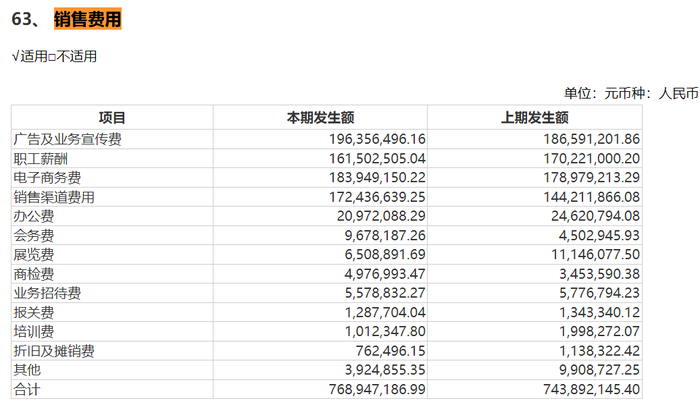 即便如今出现了营收、利润双降的问题,公司仍然不吝啬在营销上的花费。2024年前三季度,公司的销售费用高达12.07亿元,同比增长4.27%。
