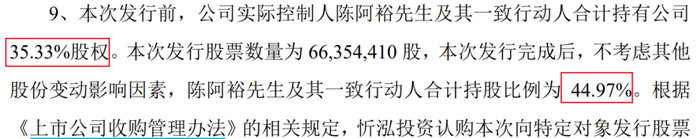 公开资料显示,忻泓投资是公司控股股东华易智能制造的全资子公司。其中,陈阿裕、陈一铖、陈萍淇父子(女)三人合计持有华易智能制造77.65%股权。若定增顺利进行,陈氏家族此次获得的股票超过5000万股。