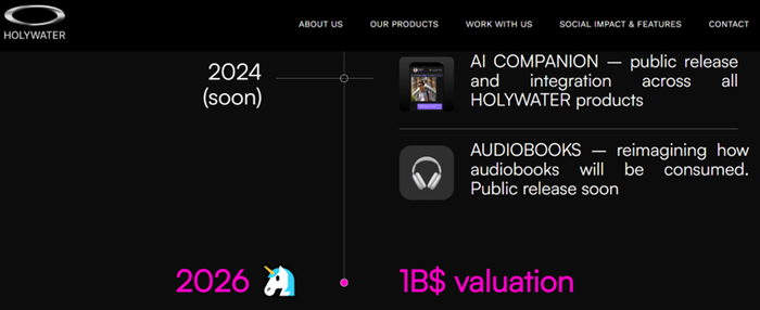 HOLYWATER的野心不小。根据公司官方信息,HOLYWATER 计划在2026年实现公司估值超过10亿美元的目标。