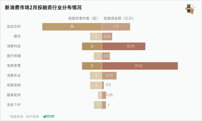 造物无言却有情,每于寒尽觉春生。三月,沥金对多个数据库进行搜集、检索,整理了相关的消费投融资数据。早春时节寒意浓,投资市场情绪也有所降温。据不完全统计,二月共发生投融资事件39起,较上月数据出现回落。