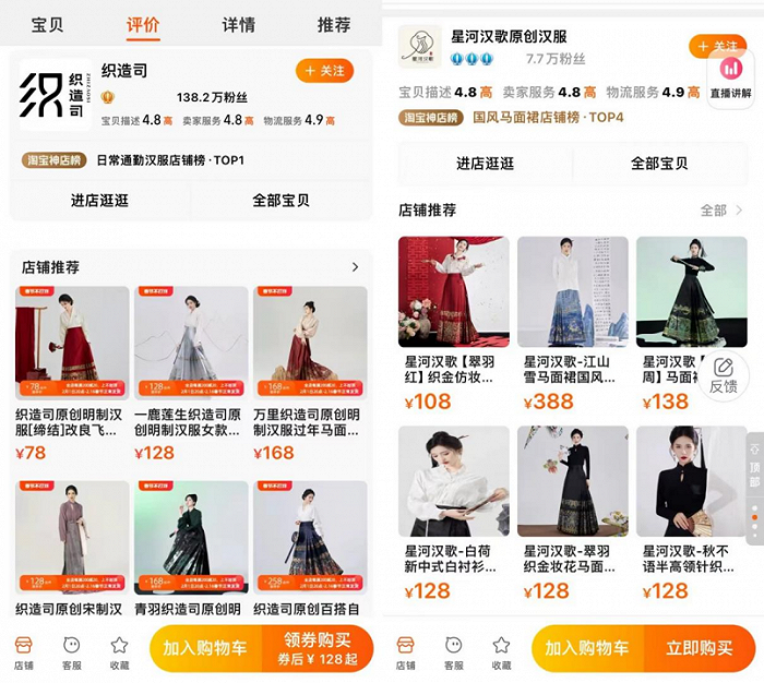 一位喜欢国风服饰的消费者告诉《听筒Tech》,“稍微对工艺有点讲究的产品,在平台上要价都不低,要捂紧自己的钱包,当前这个价位距离大众日常穿搭消费水平着实有点远。”