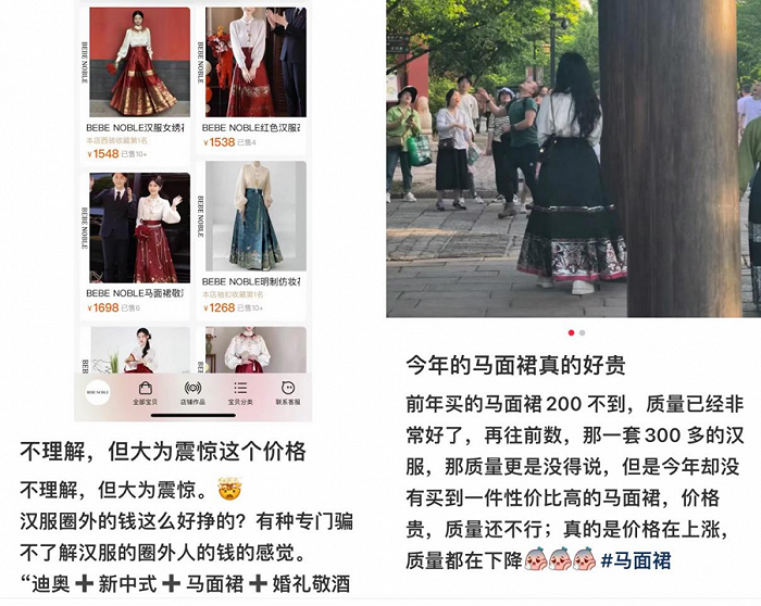 也有人感叹,“2023年的马面裙真的好贵,前年买的不到200元,质量没得说,现在不仅价格在上涨,质量也在下降。”