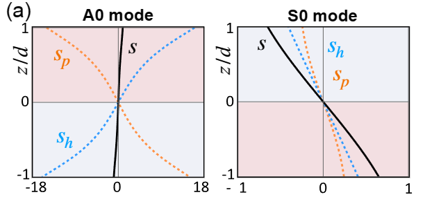 图11 弹性板波(兰姆波)的A0模式和S0模式中,杂化贡献(Sh)相反,导致总自旋相反。