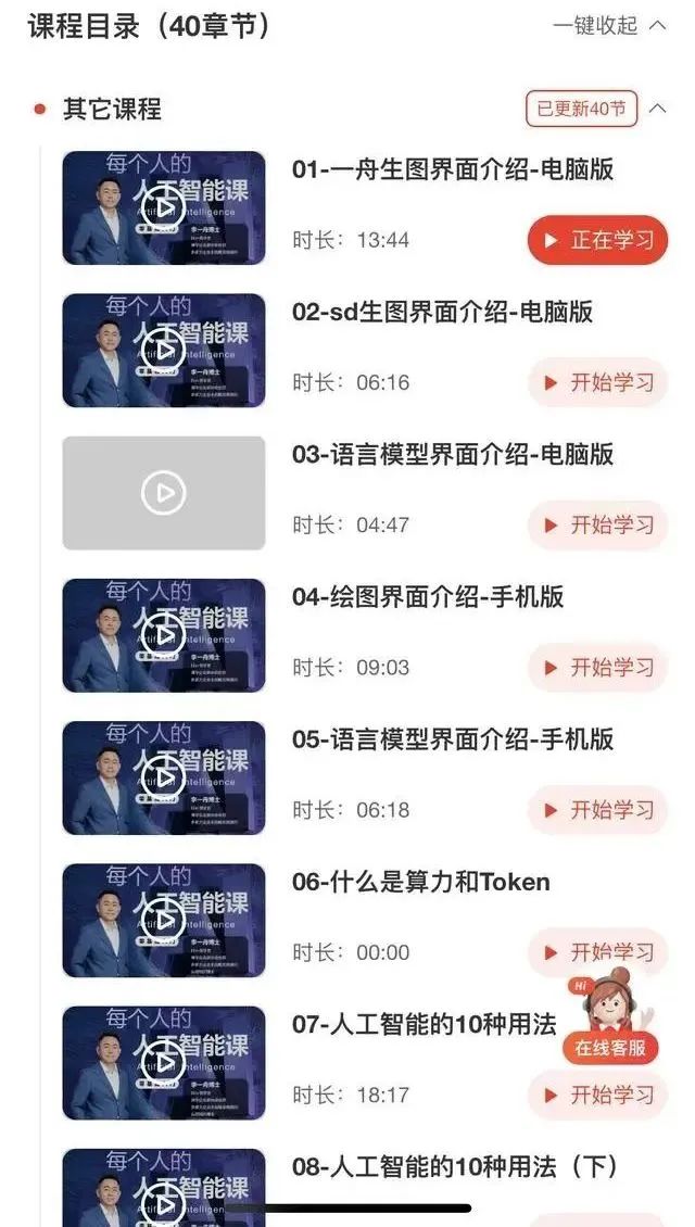 他所售卖的199元的AI课程主要有39节课,其中24节时长短于10分钟。且课程内容十分基础,可以称为扫盲程度,还不时插有硬广。