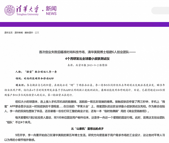 而在第二年4月,不安分的李一舟再次在女性赛道创业,找上6个同学、朋友,组建了“微蜜”创业团队,做了一款专为女性设计的皮肤测试仪app及产品。同年9月,李一舟创建匙悟科技公司。数据显示,匙悟科技完成过3轮融资。2016年,启迪之星创投、知卓资本、夏鼎资本参与A轮融资。2014年-2015年,匙悟科技完成过数百万美元的Pre-A轮,以及数百万人民币的天使轮融资。
