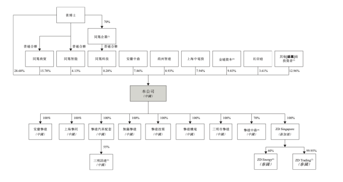 招股书显示,挚达科技创始人黄志明直接持股28.68%,并通过同笃商贸、同笃智能及同笃科技(员工激励平台)分别间接持有约15.78%、约4.13%及约0.28%。综上,黄志明等所属的控股股东集团合计控制公司约48.87%的投票权。