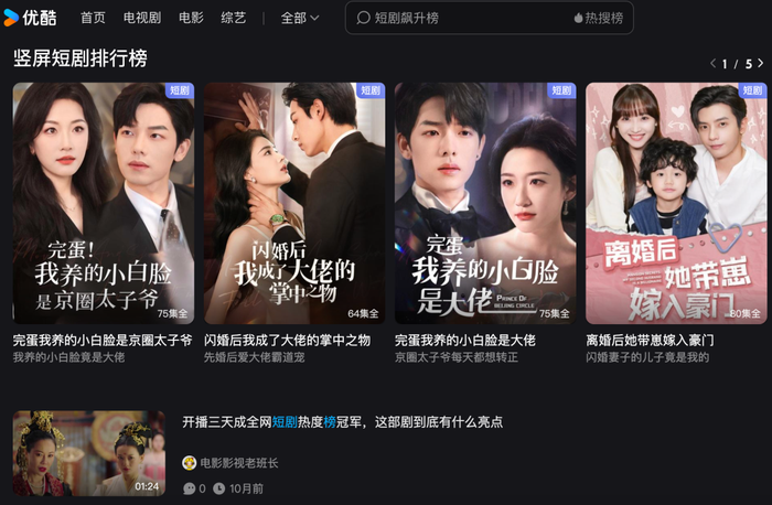 9月底爱奇艺宣布下场做短剧,标志着国内四家长视频平台已全部杀入短剧阵营。腾讯视频和优酷则是再次更新分账短剧规则,虽然细则有所不同,但大方向都是要给予合作方更多好处。很多制作方也透露,近期接到了各大长视频平台的短剧合作沟通。