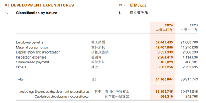 对于持有超12万名工程师的比亚迪来说,职工薪酬一直是其研发支出的大头。2024年财报显示,比亚迪在研发支出类目中的职工薪酬为324.5亿元,占总研发支出541.6亿元的60%。