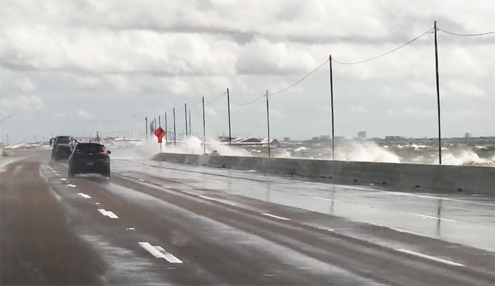 9月26日,她看到室外“艳阳高照”,就按照计划出门见客户,路过横跨坦帕湾(Old Tampa Bay)的桥上时就已经“感觉慢慢地有海水溢上来”。客户没有上班,回程途中,Diana选择了另一条更高的Howard Frankland桥,但情况仍比之前更加严重,不仅海水已经溢到桥面,风也很大,从她提供的现场视频中可见海水拍打着大桥围栏。9月27日,她再出门时,发现此前的桥都已被封。Diana说,由于她居住在远离海边的坦帕市中心,并未受到洪水或其他影响。不过,连续几日,每天晚上坦帕都有狂风暴雨,还可以看到公路上被吹掉的路牌。